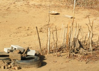 These are two examples of crappie condos that are normally in three-four feet of water, but are exposed right now during the drawdown.