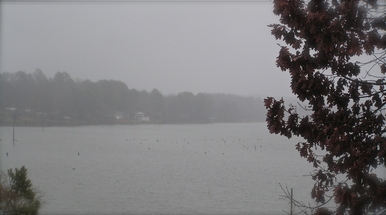 Okay, there are some days when living on the lake isn’t much better than any other good place. We have our gray days, too. Wednesday’s changing temperatures, fog and precipitation that ranged from constant drizzle to pouring rain wasn’t the best day to enjoy the beauty of the lake or the outdoors.