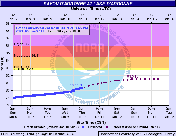 We had a record numbers of “hits” on the “area lake and river levels” link on lakedarbonnelife.com the past few days to check on water levels and the predicted rise. I expect that to continue. Here’s what it looked like last night, and as you can see, the projections are for even more rise on the lake. The lake is at 80.33 feet (.33 feet about pool stage). Projections are for it to be a foot and a half higher by early next week. Hopefully, with no more significant rain, it will begin a steady drop back closer to pool. By the way… just in case you’ve never heard Cash’s song, the lyrics are at the bottom of today’s post below the water level chart.