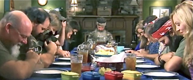 You have to know that there is screaming and gnashing of teeth from liberals and atheists in the hallways of A&E over the success of “Duck Dynasty” and especially over the family prayer that Phil Robertson says “in Jesus’ name” at the end of every show. I’ve heard that there is tons of pressure on A&E to make them stop the prayers and having guns on the show so often. I also heard that when A&E went to Phil to discuss it, he told them, “if we cant pray to God on the show, we will not do the show. Guns and God are apart of our everyday lives and to remove either of them from the show is unacceptable”. Thumbs up.