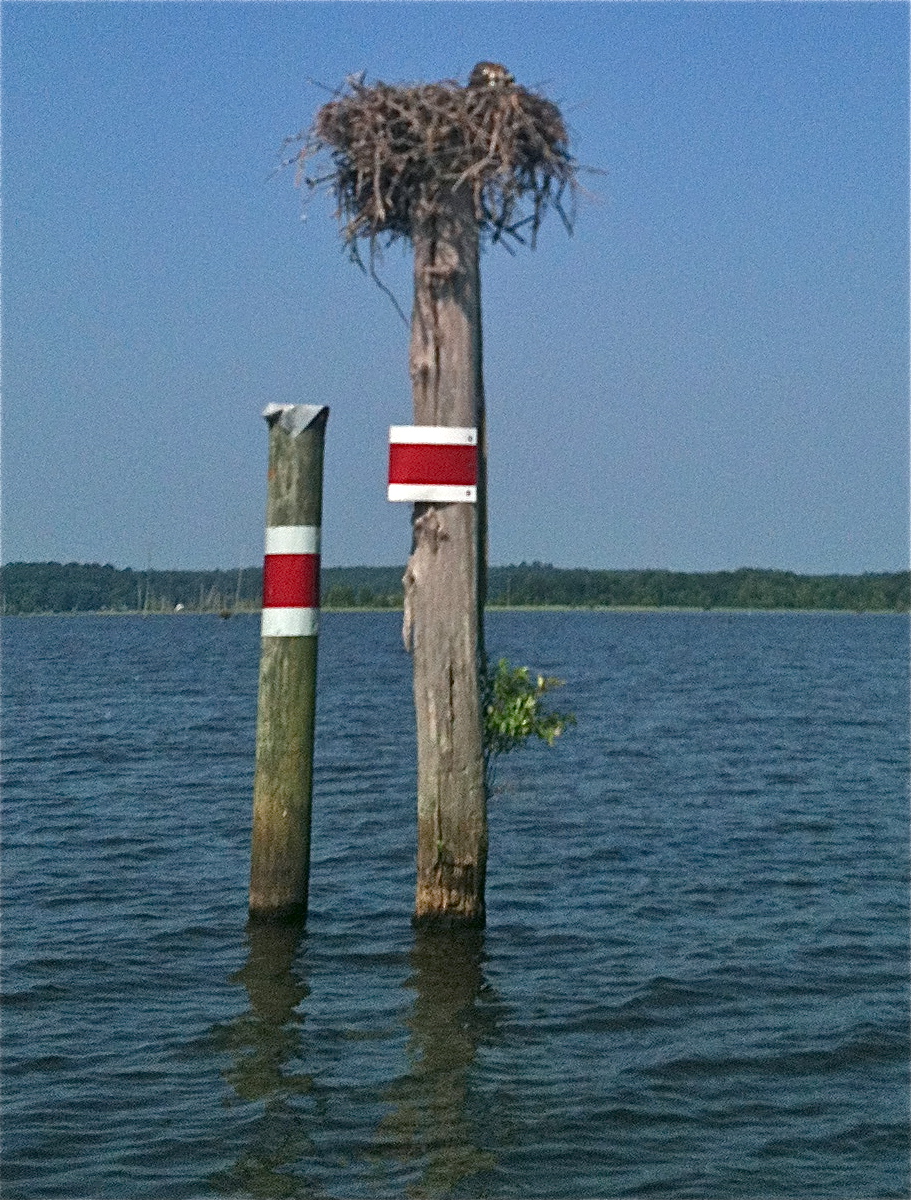 Momma Osprey peers out over the top of the big four-foot nest resting on a D’Arbonne channel marker.