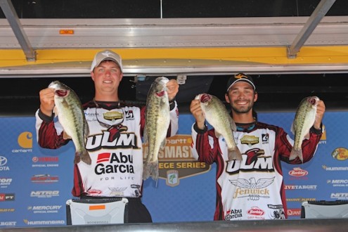 Blake Deron and Brett Preuett of ULM are also in the standings with a catch of 9-4 for 24th place after the first day. Good luck to the Warhawk Fishermen. These ULM fishermen are making quite a name for themselves and the local school in college bass fishing.