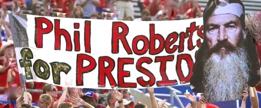 Louisiana Tech played Tulane in Ruston Thursday night, and among the celebrities honored were former Tech QB’s Phil Robertson and that guy that used to play for Pittsburgh, oh yes, Terry Bradshaw, I think. Some of the crowd had a good idea and shared it in pretty bold fashion. Thumbs up!