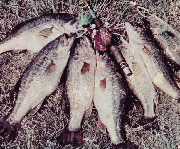 The good old days — A 3 to 1 ratio Ambassadeur 5000 reel, 5 1/2 foot limber fiberglass rod and a mess of big old bass
