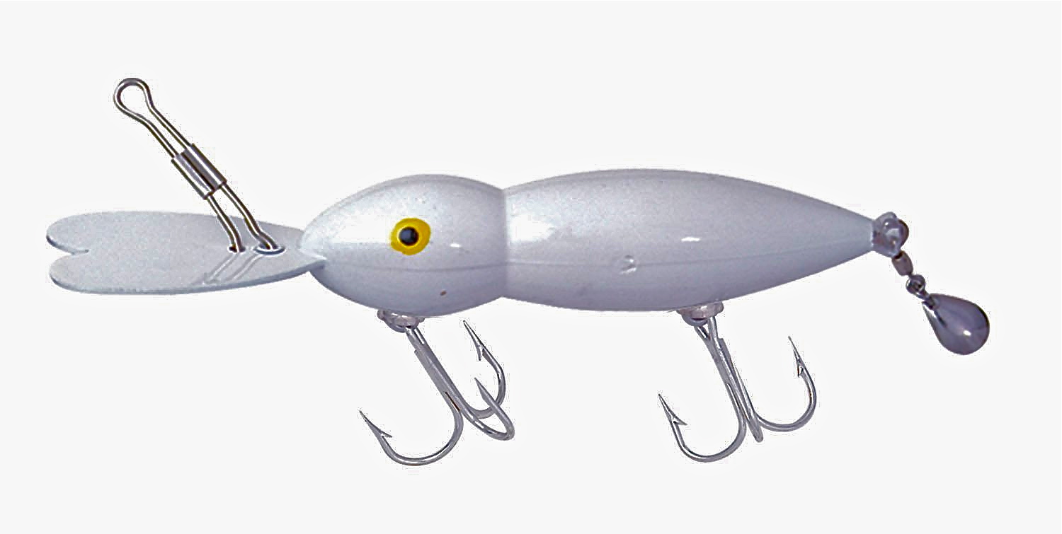 striped bass back in the late 1970’s. We put in at the spillway and trolled six-inch Magnum Hedden white Hellbender lures across the dropoffs of the main river channel in the open water in front of the dam. They dove 18-20 feet deep. If you have ever fished with a Hellbender, you know that reeling one in is the equivalent of doing 20 curls with a 20 pound barbell on your right arm. You can imagine what it was like trolling with one of those suckers.