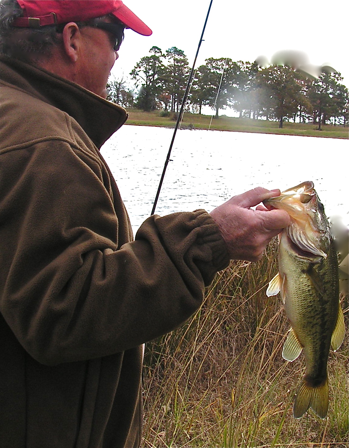 Frankly, it didn’t look like there was much hope, until on the third cast, George hooked with a nice micro-fish. Then another, and another. Before the morning was over, we had landed a two-man limit of 20 bass. This was the second straight trip this has happened for us. You know what that means. By the odds, it will be somewhere around 2018 before we land another such limit. I do think I know what happened with that solunar thing, though. The fish were confused over when the major biting time was, so they did just what George and I would do. They just ate all morning! I think there were two other major factors. First, it was my suggestion that we dress like we were duck hunting, so if the bass spotted us around the bank, they would think we were hunting, not fishing. Second, George wanted to get some filets to fix as “fish bite” appetizers for our Christmas Sunday School party tonight. There is no spot on the Solunar Tables for Divine Intervention, but I think that explains our “fish bite”.