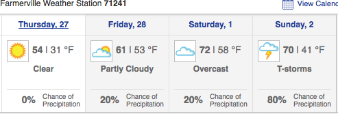 Caney Lake is producing some good catches of white perch. Fish are deeper and jigs are working best. Poverty Point Reservoir is also producing good catches of white perch and some nice bass. Both are a little behind where they normally are this time of year, but it’s just a matter of the temp getting right in the next few weeks. The best way to get a good fishing report is to hook on the boat, bait up the fishing pole and go find out for yourself. Who knows. You might just be the somebody that they are biting for somewhere….