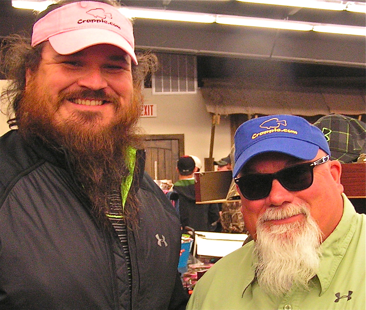 Here’s my report back to Ed: “Okay, Ed, here’s something that money can’t buy. I met Godwin and Martin down at Duck Commander headquarters Monday afternoon and gave them your Crappie.com goodie package. They were delighted and as you can see below, put on some of the gear. Martin even “went VISOR ” with Godwin. Thought you’d like that. I told them you had seen the writeup on lakedarbonnelife.com and were impressed they were crappie fishermen.