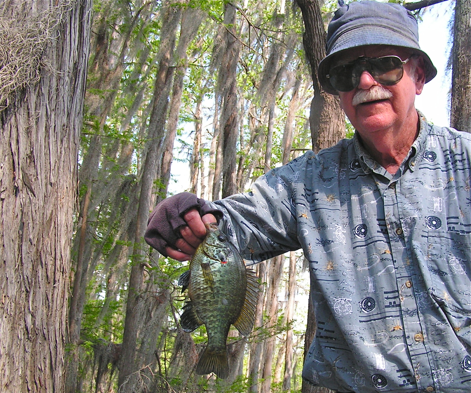 Chinquapins were the main target and red worms were the ammo. We hadn’t been out in the Cheniere Tupelo Gum trees long when Ray’s bobber began a little dance.