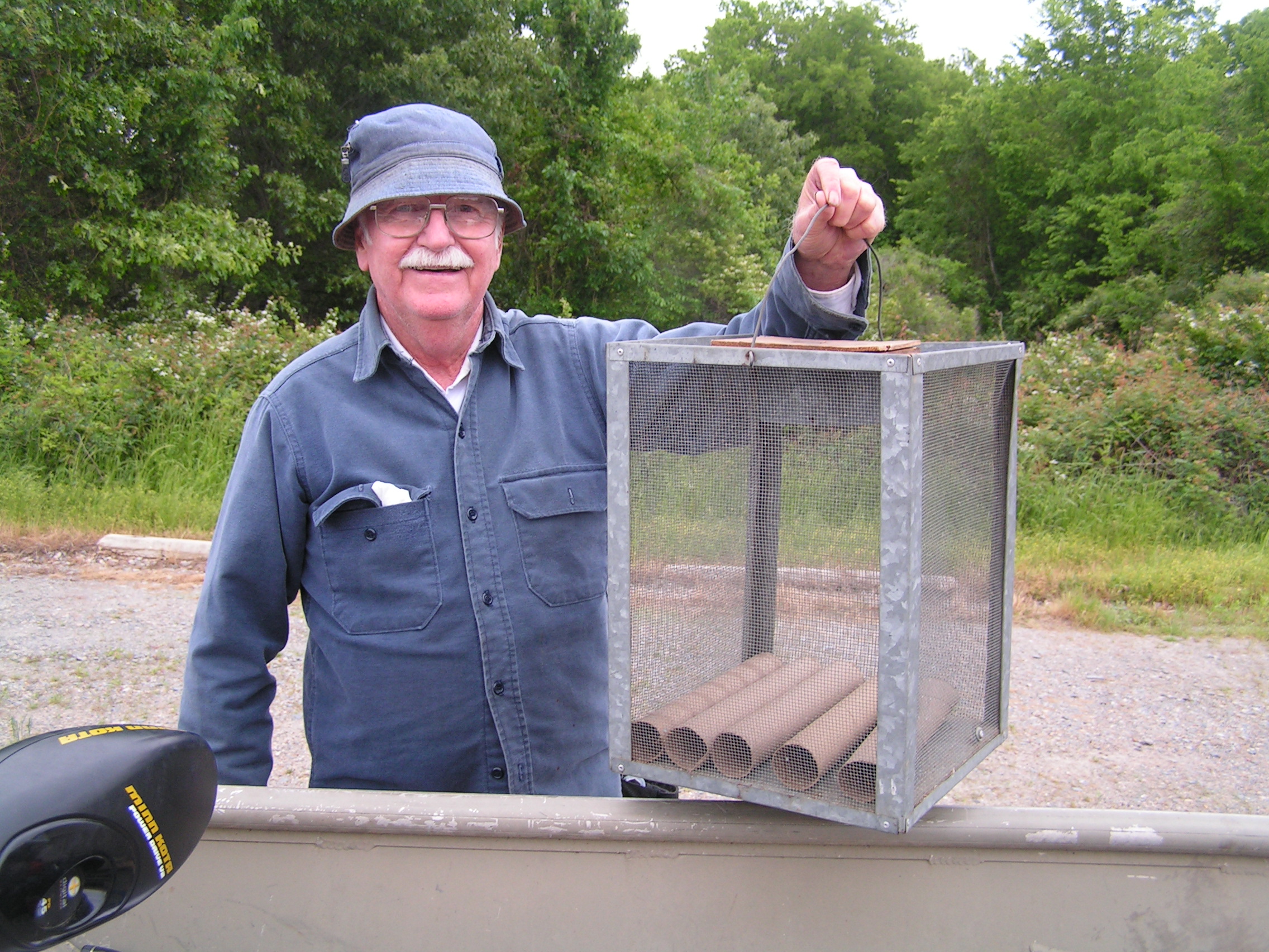 I never took a botany class, but fishing with Ray is like going to breamology class and if you pay attention, you can come out with a BS in bream fishing, that’s for sure. He has everything from weedless bream hooks to a redneck bait keeper for red worms that is simply an old coffee can full of wet moss. My favorite gizmo of his is the Crocodile Dundee version of a cricket box — “that little red round thing isn’t a cricket box, this is a cricket box” — yep, he has one that holds 1,000 at a time! That’s only for when the are really biting, though.