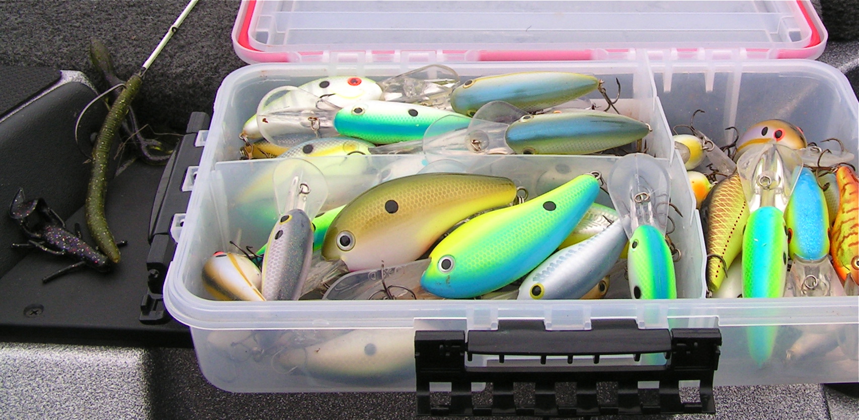 creek channels on the humps early and late. Big Texas-rigged worms and other big plastics are working best. Most people don’t like to spend the money on big 12-15 foot deep divers, but they are great this time of year also. Crank them down until they bump cover, then slow down the retrieve. At an average of $5 – $8 apiece, you might want to invest in a lure retriever as wells.