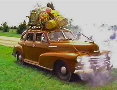 The picture perfect movie trip includes happy mom and dad Parker and two boys, Ralph and the younger, whiny Randy. Running out of gas, an overheating radiator, a flat tire, missed detour signs and constant stops to shop for the “perfect” yard art…surely you’ve been there. It’s the way life should be. There were no personal electronic devices on the way to Ollie Hopnoodle’s.