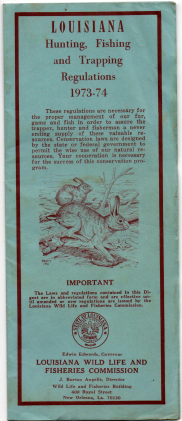 A couple of weeks ago I stumbled upon the “Louisiana Hunting, Fishing and Trapping Regulations for 1973-74”, the year that I graduated from college and actually began work at the Monroe newspaper. I actually wrote some about the outdoors. A much simpler outdoors, I might add.