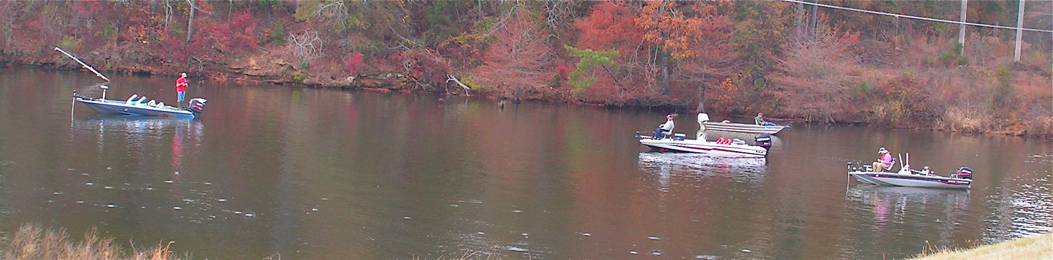 Monday morning the wind had subsided and it was almost eerily calm, but the 50% chance of rain didn’t materialize early and there were quite a few boats at both bridges, Jake’s and at Lester’s. Apparently only a few fish were caught, mostly real early, but more than 20 boats stuck with it well past noon. Up at the Bernice bridge by Lester’s, the shad were working the surface like schooling bass and while the fish weren’t doing much, the seagulls (or I guess Lake gulls) were having a feast.