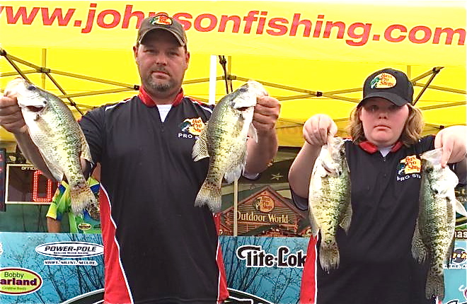 * Freddie Dooly and Dwaine Barthol of Texas won big crappie of the tournament with a 2.03 fish. Ironically, that was the only two pounder weighed in during the tournament. Had it been a couple of weeks earlier, dozens of twos would have hit the scales.
