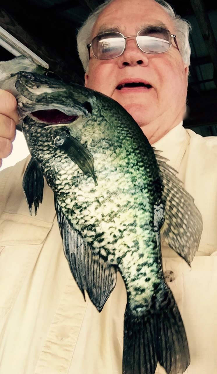 In a matter of about 30 minutes, I had landed nine and made a mad dash to the house (okay, a slow saunter…sorry, that’s all I have these days)…I ate a bite of supper and went back again. Before dark, I had 14. Unbelievable. No need for catfish now. By the way, they were all males. And if I threw my bait more than a foot away from the underwater structure, I didn’t even get a nibble.
