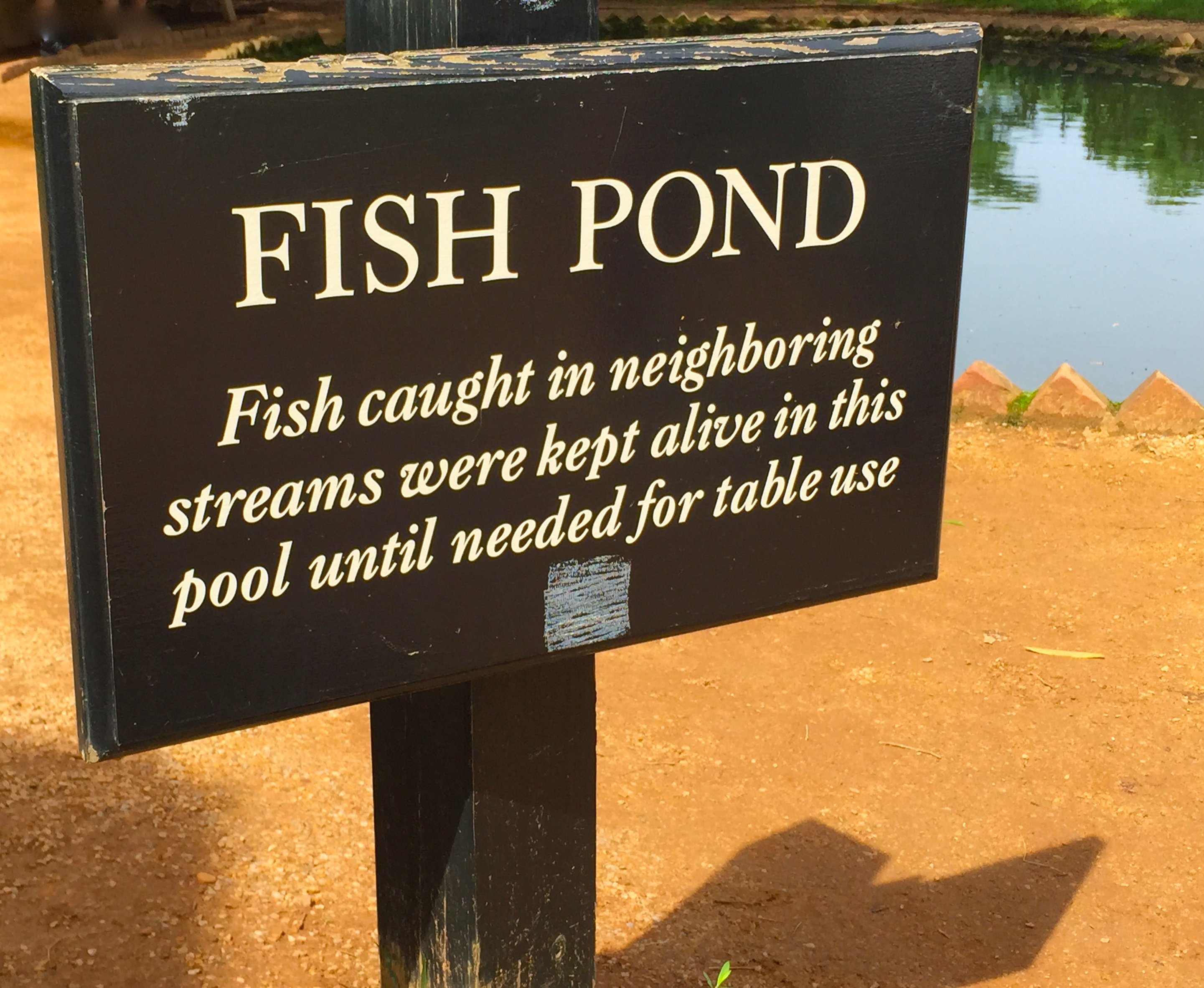 Jefferson apparently had a strong liking of fresh fish and since they probably couldn’t go fish every day, he had a stone pond made where fish were caught from neighboring streams and ponds and placed there for easy pickings when it was time for a fish fry. Legend has it the pond stayed full of fish because it was a regular menu item at the house.