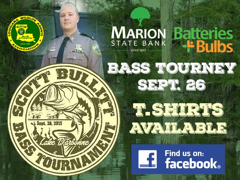 Mark the date on your calendar. Even if you don’t bass fish, you can make a donation. Any checks should be made out to the Louisiana Wildlife Agents Association with a note “Scott Bullitt Fund” on the check.