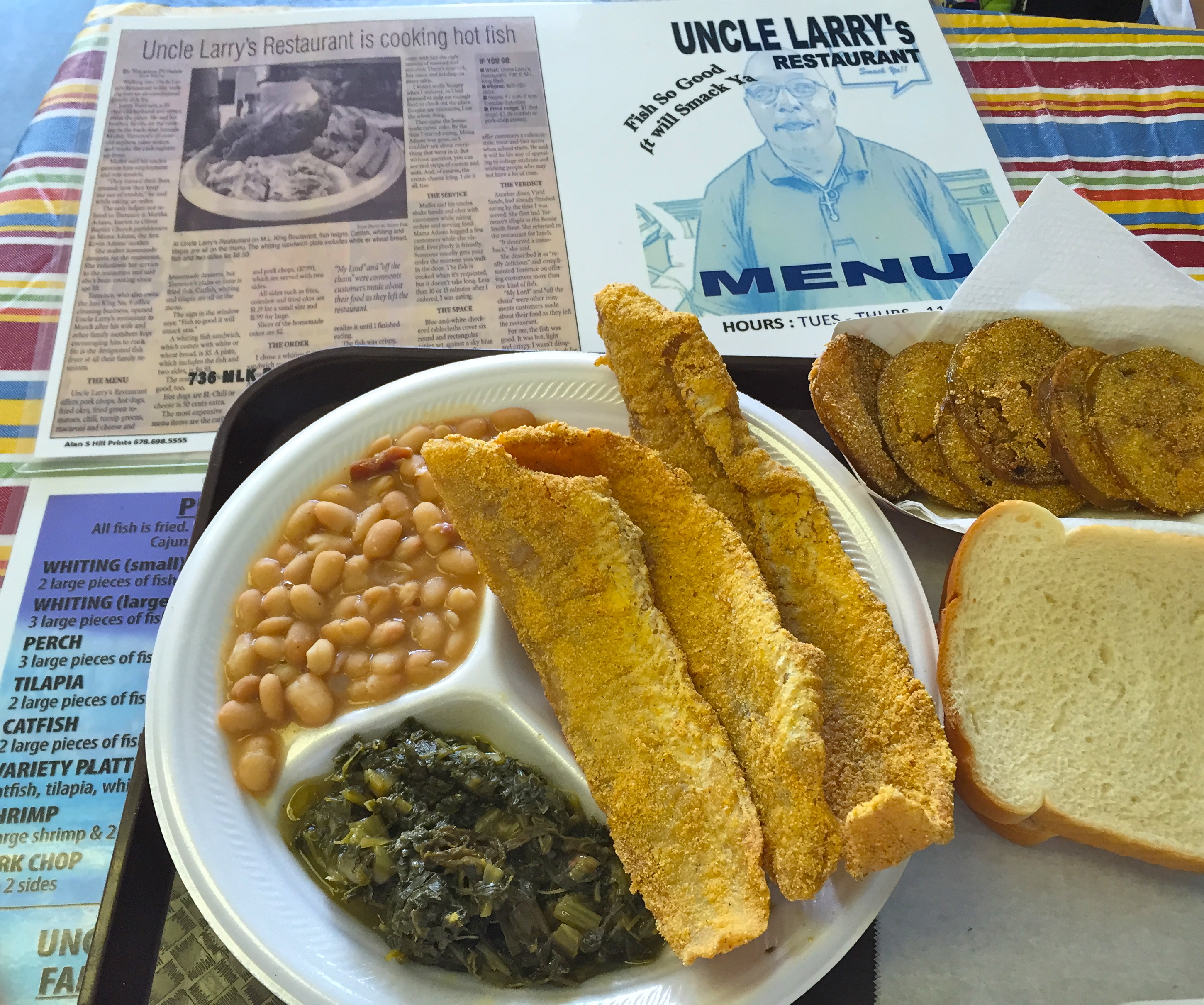 Anytime I go anywhere, I am always on the lookout for neat places to eat off the beaten path. I’m no Guy Fieri, but I try. I found one of those spots in Chattanooga, Tn. this summer. Welcome to Uncle Larry’s Soul Food Restaurant, where the sign out front said “Fish so good, it will smack you!”