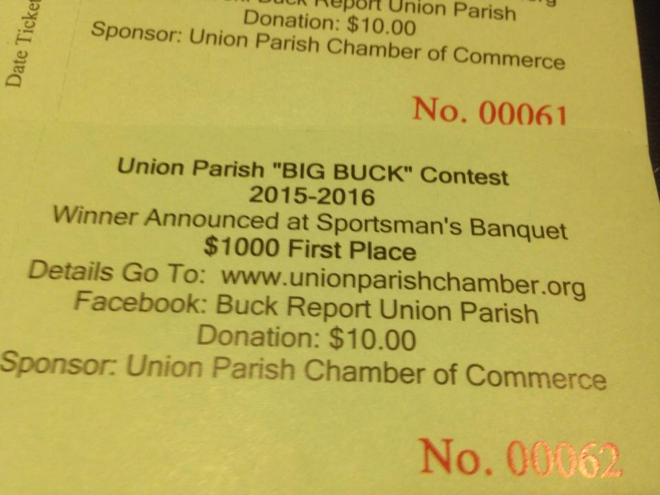 If you are hunting in Union Parish and you didn’t buy a Big Buck ticket from the Chamber of Commerce, you might have just cost yourself $1,000! That’s a pretty big mistake.