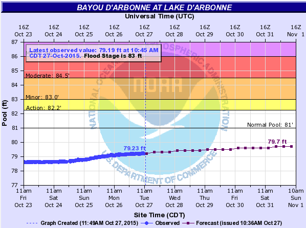 And we close today with a “shot” of the water level at Lake D’Arbonne. Going up….:
