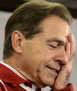 Saban is forced to greet the SEC outdoor press at the dock with a scowl and (after picking up another Red cola bottle) issues a quick statement. “It really doesn’t matter what you think. Awwright. Nobody on our team is fishing for you. Awwright. You had us catching them six feet under, but we couldn’t catch them anywhere. Awwright. I want this lake drained. Awwright.”