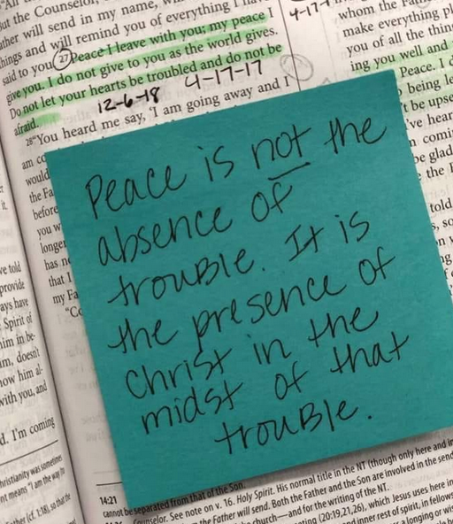 “ Peace I leave with you; my peace I give you. I do not give to you as the world gives. Do not let your hearts be troubled and do not be afraid.” — John 14:27