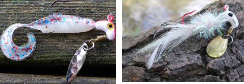 The traditional marabou jigs are the most popular, but several new models are also catching lots of crappie. My personal favorite is the new Gold Series Road Runner which is a combination of the older models, but looks more like a hair jig with a spinner in the water. It also works great with a small trailer. Any of the lures also work well with a live shiner trailer when fish are wanting a bigger bait.