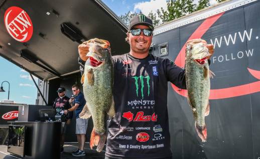 “I had about 21 pounds probably, and I was on my way back, and I stopped and threw a Keitech around and ended up catching some smallmouth that culled one of my smaller largemouths,” Stewart says. “I was actually just planning on going all in on largemouth, but I had a little extra time, so when I got back I messed around with that and ended up making a cull, which was pretty crucial.”