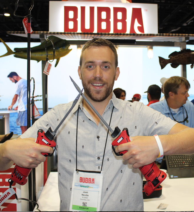 I got my first Bubba Blade knife as a gift two years ago. It’s a good one, with a sturdy slip-resistant handle and a thin, flexible blade that is dangerously sharp. I was thrilled when I got to test out the newest product of their line — a heavy duty, powerful electric knife with four sets of blades. It’s not on the market yet, but when it is in a short while, you better get you one of these. It might be the last electric knife you ever need to own. Bubba’s Josh Neville pointed out the new internal fan system and the larger motor make the unit longer lasting, cooler to operate and easy to handle for big or small carving jobs. You can even filet a tuna with it — yes they did…and cut it into little pieces at their booth. Yes, I ate some. Yes, it was good! By the way, it comes in 110-volt or Lithium battery models.