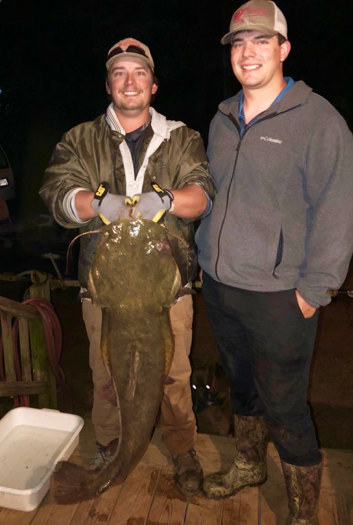 But today, we’re going to focus some fish in D’Arbonne that could almost EAT a six pound bass. Dale and his grandsons Daniel and Dakota, along with several other lake regulars, have been stacking up giant flathead catfish this spring. The Taylor Trio’s two biggest topped 50 pounds and they’ve put hundreds of pounds of op filets in the freezer this spring.
