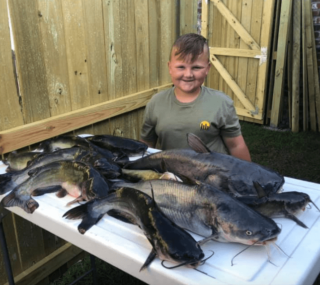 It’s also a great time to get youngsters involved. Here are a couple of shots of area young anglers having fun catching catfish and getting up a good mess of meat for a family fish fry!