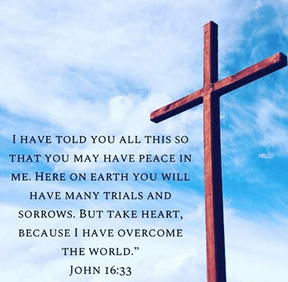 The world is crazy. But I didn’t have to tell you that. People look for peace, happiness and contentment in many ways in this world. Often we look to activities like fishing, to material things, even to other people. You can find peace in all that, but it’s only temporary. There’s one way to find peace that will help you overcome trials and sorrows forever. It’s listed in John 16:33.
