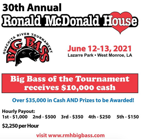 The biggest of the big bass tournaments is back and headed for the Ouachita River. It’s a fund day of fishing for a fantastic cause. Please like and share! This tournament will help fund the construction of a brand new Ronald McDonald House in St. Francis Hospital. Thank you to all who have sponsored/donated already!