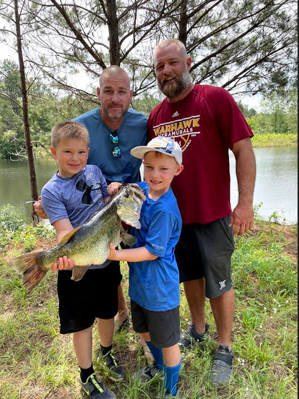 “It was incredible,” said Michael. “I mean, we had been catching a lot of small bass with kids and having a good time. The other kids all got tired and went back in, but CJ wanted to stay with us. He never wants to stop fishing, Michael said. Bubby’s son Tate and CJ fish together all the time, following in the footsteps of their dads.