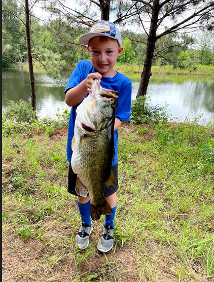 After the big fish was weighed, it was released back into the pond and swam away to fight another day. CJ wouldn’t have it any other way. He plans on being a fisherman for a long time. In fact, this year in school for career day, he declared he wanted to be a professional bass fisherman. He has even been on a trip with professional fisherman Tyler Stewart.