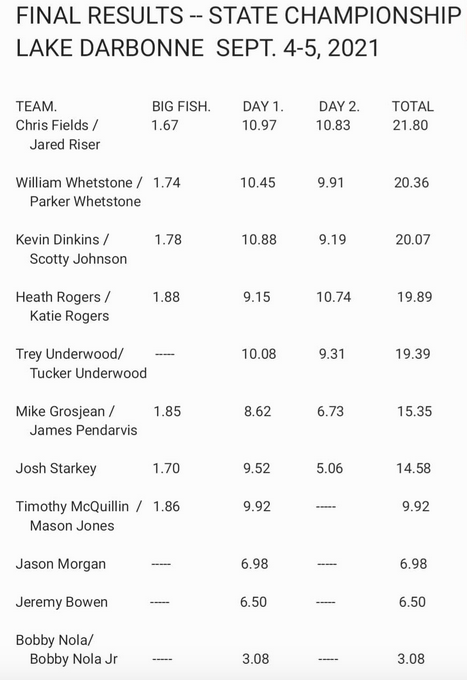 Besides just holding their championship tournament, this group also gave a pretty good preview of what we might expect in the national championship, which could have up to 100 boats from 17 or 18 different states. Thanks to Jason and Jen Redding for making the circuit a keeper the past two years!