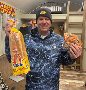 Then he and several other anglers that are staying together went to the grocery store and got sandwich stuff and snacks.