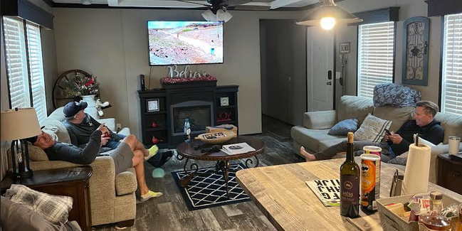 “We’re watching the show Ridiculousness on MTV,” he said, laughing again. “Right now we are just relaxing and hanging out. It’s pretty low key watching a bunch of stupid stunts on TV. Actually, it’s pretty entertaining.”