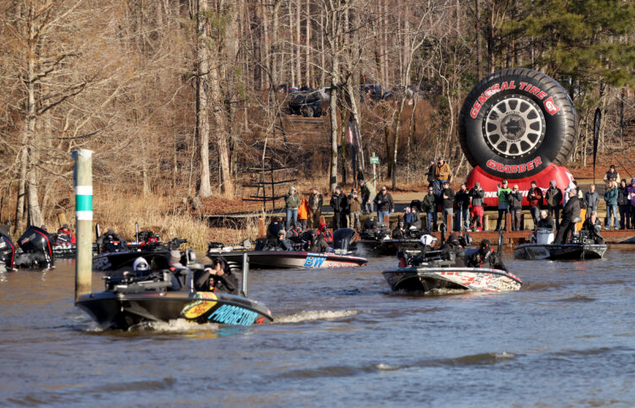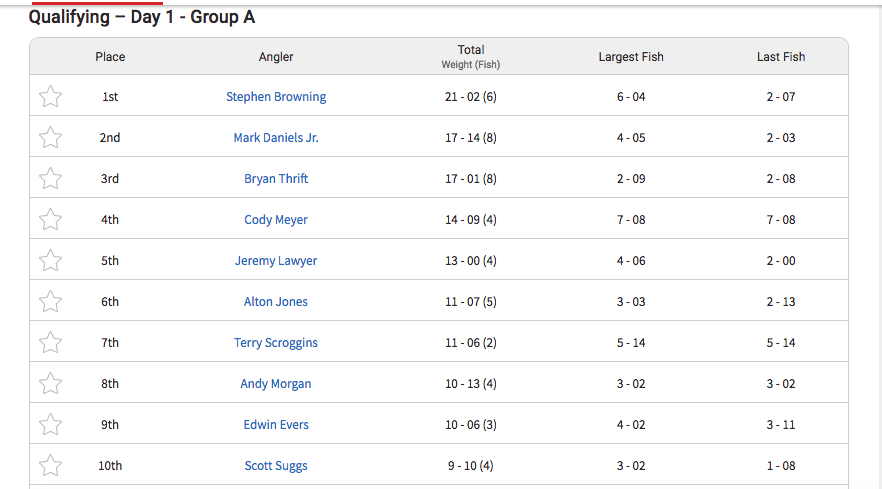 The first four days of the event are at D’Arbonne, then a knockout round at Caney for the top 30 finishers, leaving only 10 remaining to fish at the the championship at Bussey Brake. The winner takes home a check for $100,000. With that in mind, Browning had the quote of the day: “To be honest, I don’t want to go to Caney. I want to go to Bussey Brake!”