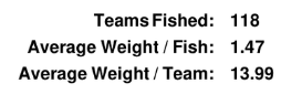 Of the 118 teams ended, only 30 managed to catch a seven fish limit for two days weighing in for a 1.5 pound average or better. The average two-day weight per team was 13.99 pounds, just about a one-pound average. Many said they saw some bigger fish, but couldn’t get them to bite.