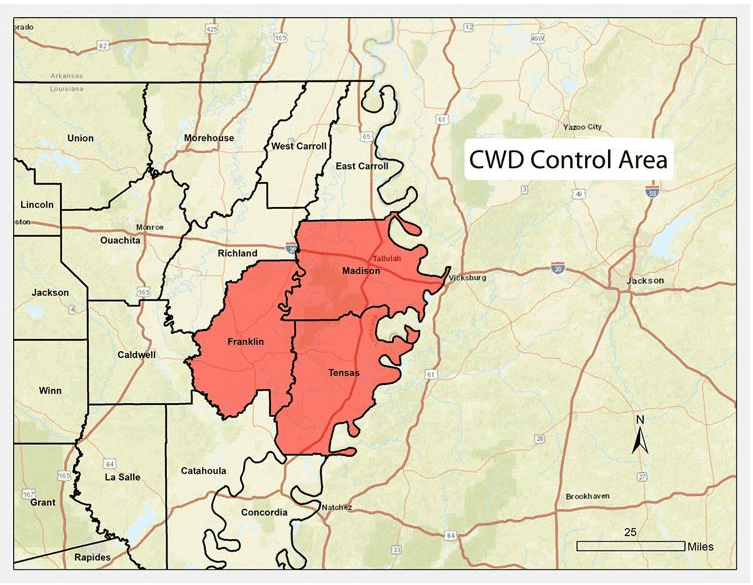 Previously, a similar ban was enacted in Morehouse and Union parishes when a CWD-infected deer was found on the Louisiana, Arkansas border. The ban lasted 33 days during deer season. The ban did not cover a 25-mile radius like the current ban but had a seven-mile ban.