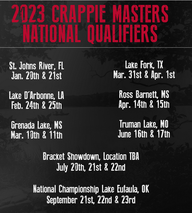 Crappie Masters will still have its National Qualifier events and D’Arbonne will host one of those on Feb. 24-25.