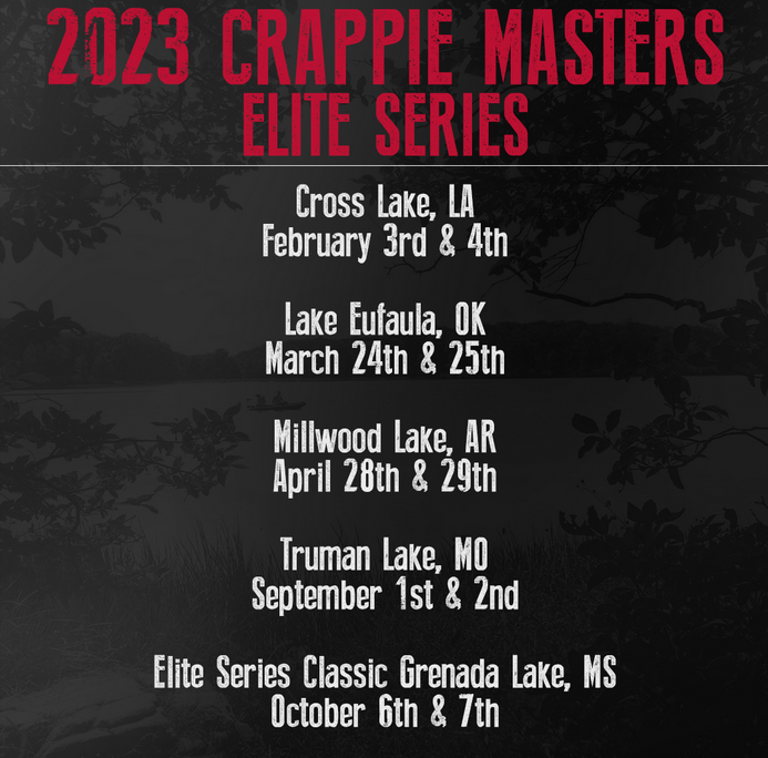 The two biggest changes are the new Crappie Masters Elite series, a tour with a set schedule with set anglers. The field is limited to 50 teams and it is full for this season. More on that in a minute.