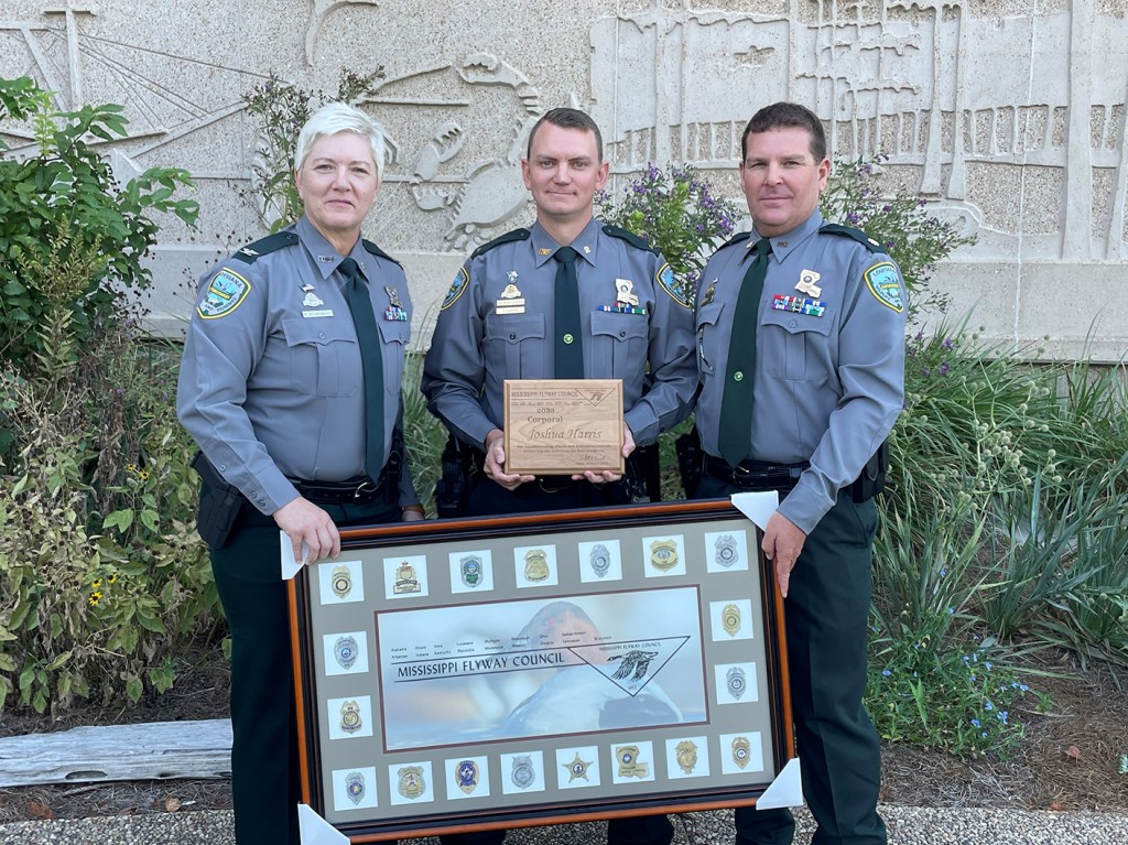 Corporal Joshua Harris received the Mississippi Flyway Council award at their meeting in Eureka Springs on Aug. 24. Corporal Harris is the first Louisiana enforcement agent to earn the council’s top award for waterfowl enforcement.