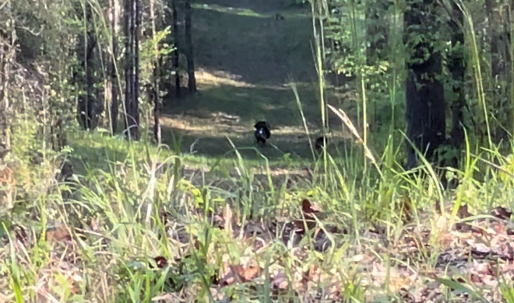 Finally I saw him coming. But he wasn’t coming to me, instead he was flanking to my left. “He’s going to the thinned so he can see better,” I thought and made a slight adjustment. I could see him getting closer in the thinned, clucking and looking. I saw two pines and made the decision to shoot when he was between them but he read my mind and sped through the opening, almost causing me to force my shot. But I waited. “He gets past that mulberry and I’m shooting him,” I coached myself.